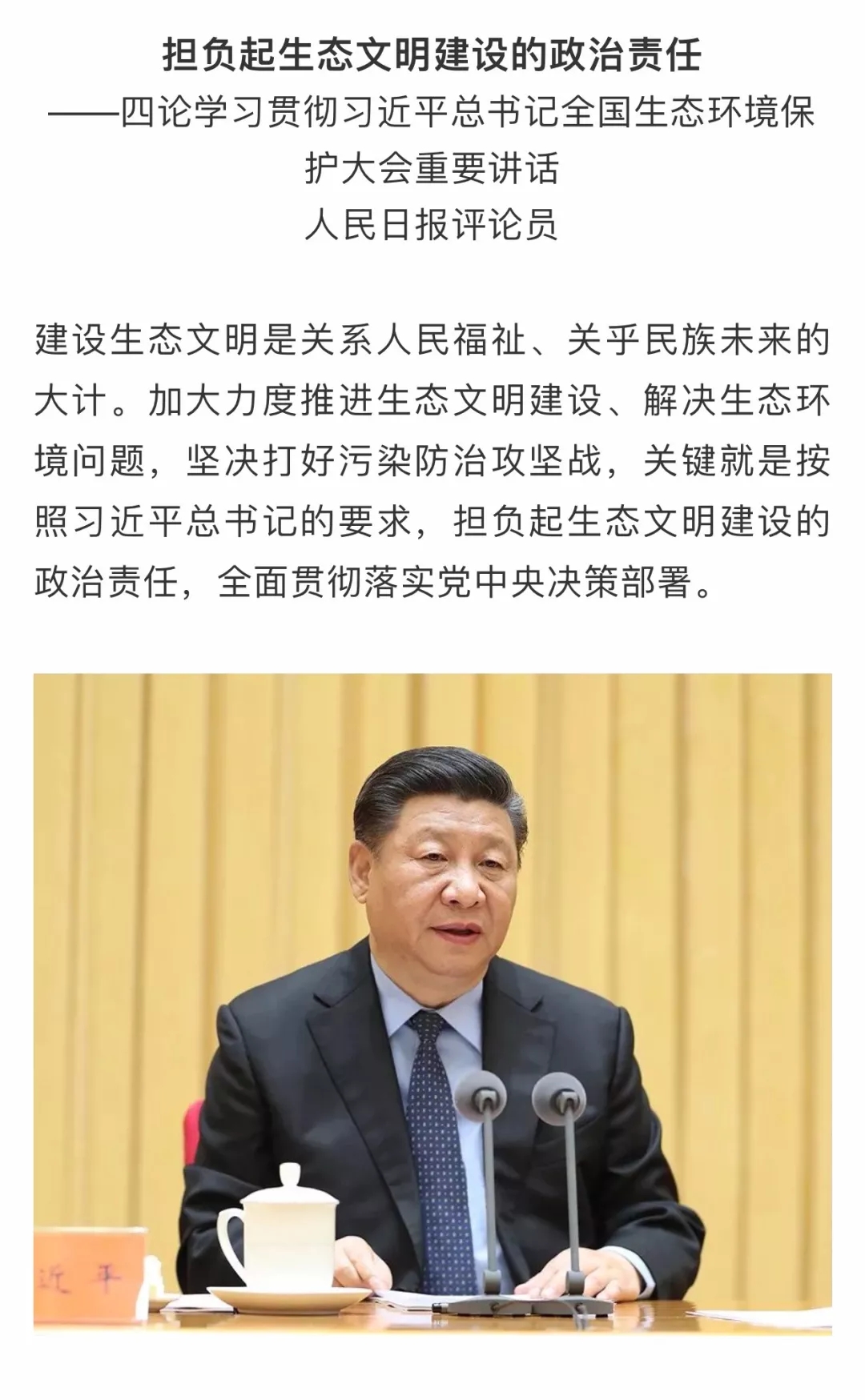 人民日報評論員:三、四論學習貫徹習近平總書記全國生態(tài)環(huán)境保護大會重要講話